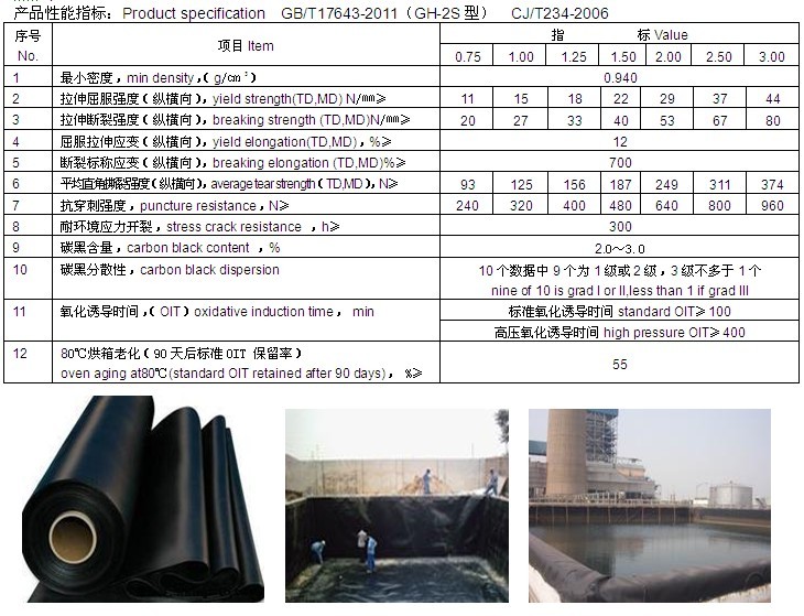 性能特點:具有優異的防滲防污性能,優良的力學性能,良好的尺寸穩定性,化學穩定性和耐熱老化性能。同時具有優異的抗紫外線輻射性能。應用范圍:市政環衛、防滲工程;防滲工程;景觀水體防滲工程;冶金石化行業的防水、防腐工程;防滲工程交通基礎設施;農業水利防滲工程;養殖業。實施防滲、防腐、防漏、加固、滲濾液收集等。臨時集裝箱結構,特殊部件預制等。