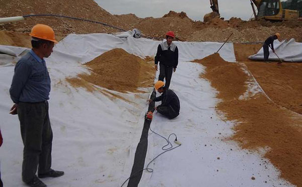 3、在防滲土工膜上卸料時,即使有土工布保護層,也不應使重、硬的物品從高處下落,直接沖擊墊襯。