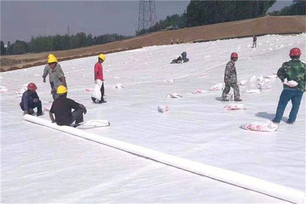(5)為了土工布材料的安全,應在鋪設土工布前打開包裝膜,即鋪一卷,開一卷。并檢驗外觀質(zhì)量。